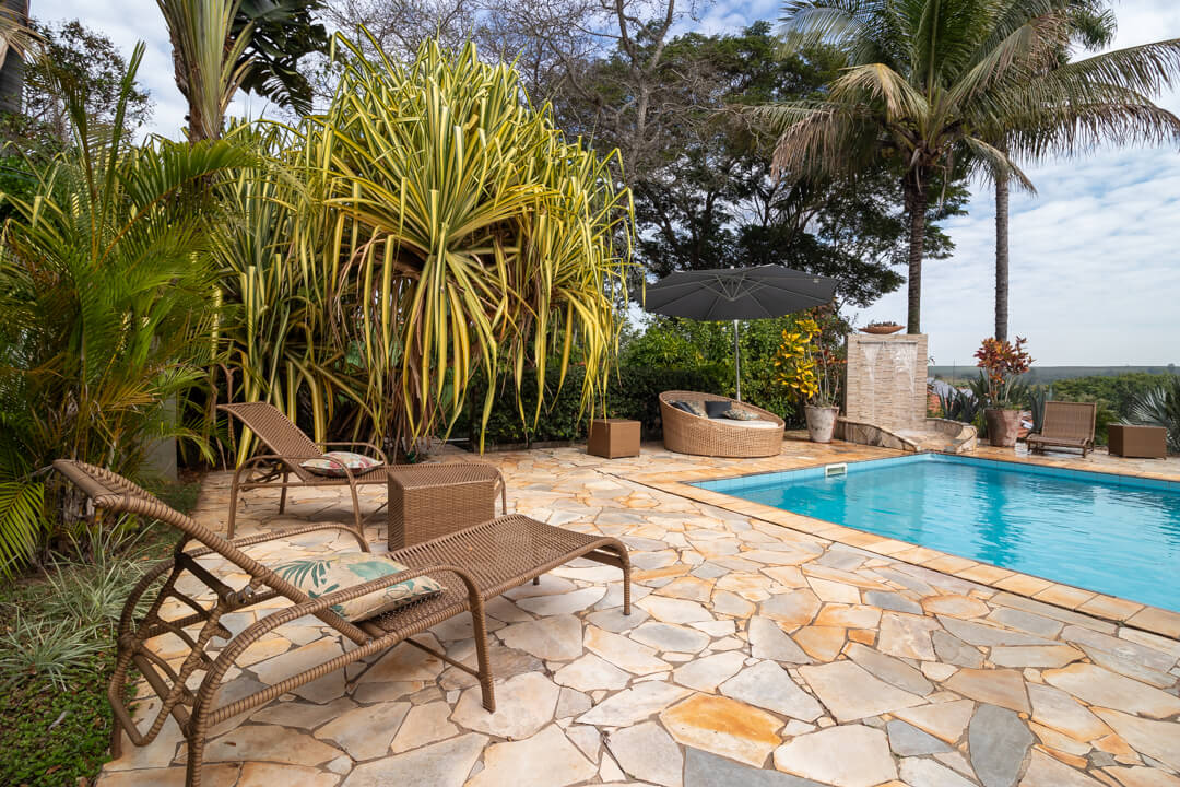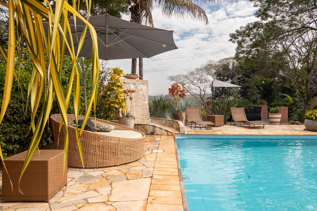 Mergulhe no sossego: nossa piscina ao ar livre é o convite perfeito para se refrescar, relaxar e aproveitar a vista encantadora dos jardins e montanhas.