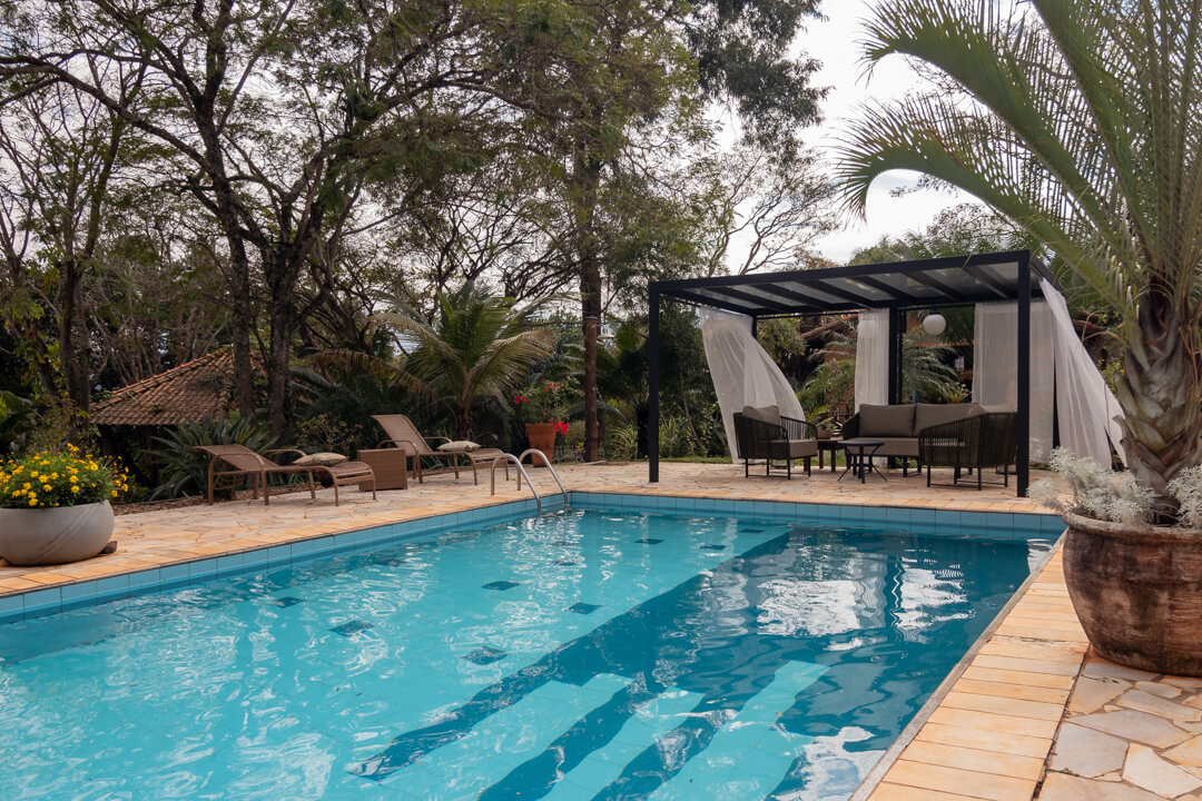 Entre jardins e montanhas, a Pousada da Lua oferece 11.000 m² dedicados ao descanso, com piscina sob o céu, hidro-spa ao ar livre, trilhas até o riacho e o doce despertar com o canto dos pássaros.