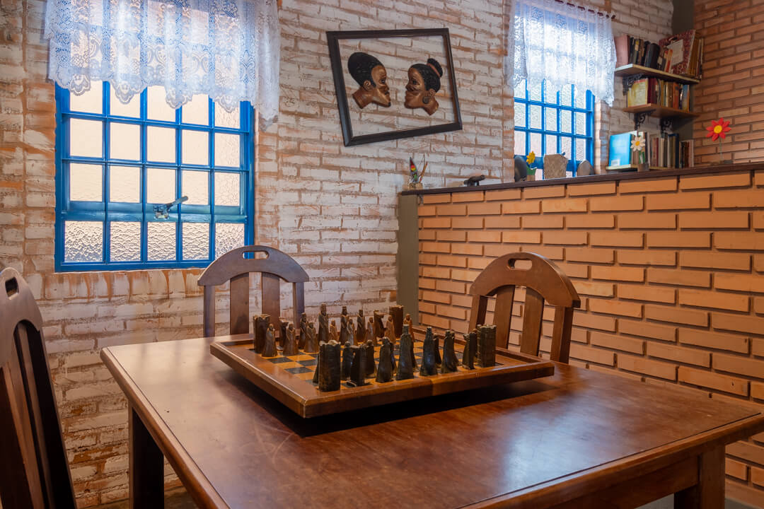 Aproveite a nostalgia desse espaço: assista um filme, leia um livro,  jogue xadrez  ou aprecie uma bebida gelada no deck.